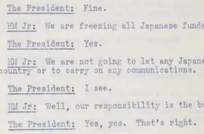 This is a transcript of a conversation between Treasury Secretary Henry Morgenthau, Jr., and President Franklin D. Roosevelt on the evening of December 7, 1941, following the Japanese attack on Pearl Harbor, Hawaii.