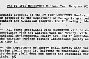 Fiscal Year (FY) 1987 Musketeer Nuclear Test Program