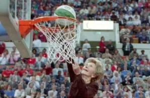 Full Citation: Nancy Reagan Being Lifted to The Basket By Charles Barkley and Wayman Tisdale at a ‘Just Say No’ Basketball Game in Indianapolis Indiana; 2/4/1988; Reagan White House Photographs, 1/20/1981 – 1/20/1989; Collection RR-WHPO: White House Photographic Collection,; Ronald Reagan Library, Simi Valley, CA. [Online Version, https://docsteach.org/document/nancy-reagan-basketball-dunk-just-say-no/, March 26, 2026]