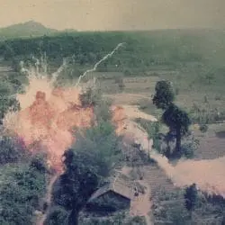 Full Citation: Napalm bombs explode on Viet Cong structures south of Saigon in the Republic of Vietnam; 1965; Photographs Relating to the Administration, Family, and Personal Life of Harry S. Truman, 1957-2004; Records of U.S. Air Force Commands, Activities, and Organizations, Record Group 342; National Archives at College Park, College Park, MD. [Online Version, https://docsteach.org/document/napalm-bombs-explode-structures/, December 16, 2025]