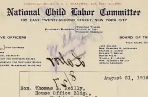 Full Citation: Letter from National Child Labor Committee Regarding Child Labor Reform; 8/21/1914; (HR63A-H16.2); Committee Papers, 1883 – 1946; Records of the U.S. House of Representatives, Record Group 233; National Archives Building, Washington, DC. [Online Version, https://docsteach.org/document/national-child-labor-committee-letter/, March 26, 2026]