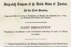 The document shown here is the Congressional joint resolution proposing the 19th Amendment. A joint resolution is a formal opinion adopted by both houses of the legislative branch. A constitutional amendment must be passed as a joint resolution before it is sent to the states for ratification.
