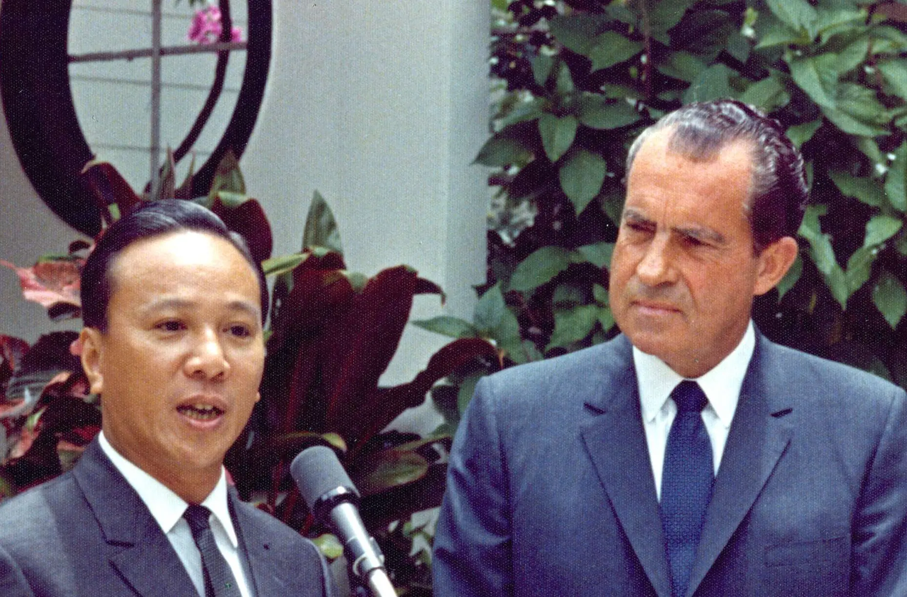 Full Citation: Photograph WHPO-1269-20; President Richard Nixon and South Vietnam’s President Nguyen Van Thieu; 6/8/1969; Nixon White House Photographs, 1/20/1969 – 8/9/1974; Collection RN-WHPO: White House Photo Office Collection (Nixon Administration),; Richard Nixon Library, Yorba Linda, CA. [Online Version, https://docsteach.org/document/nixon-and-thieu/, March 31, 2026]