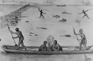 Full Citation: 208-LU-25I-4; ‘Indians in North Carolina fishing with traps, spears, and nets’; 1585 (artwork 1885); Photographs Depicting “Life in the United States”, 1942 – 1946; Records of the Office of War Information, Record Group 208; National Archives at College Park, College Park, MD. [Online Version, https://docsteach.org/document/north-carolina-fishing/, April 5, 2026]