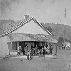 Full Citation: Office and sutler store, Round Valley Agency, California; 1876; Records of the Bureau of Indian Affairs, Record Group 75. [Online Version, https://docsteach.org/document/office-and-sutler-store-round-valley-agency-california/, April 6, 2026]