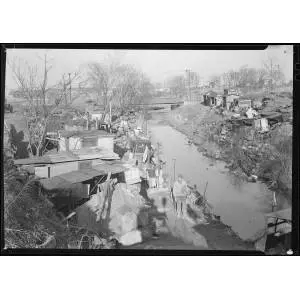 Full Citation: Paterson, New Jersey – Textiles. Bachelor shacks in outskirts of Paterson, on ‘Molly Jan Brook.’ About 25 men live there now (some of them old silk workers) and stay there all winter. Man in one view worked in silk up to 5 years ago. On relief now.; 3/18/1937; Lewis Hine Photographs for the National Research Project, 1936 – 1937; Records of the Work Projects Administration, Record Group 69; National Archives at College Park, College Park, MD. [Online Version, https://docsteach.org/document/paterson-new-jersey-textiles-bachelor-shacks-in-outskirts-of-paterson/, April 23, 2026]