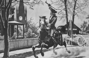 Full Citation: Photograph 208-FS-3200(5); Paul Revere’s ride; 4/19/1775 (artwork ca. 1942); Feature Story Illustrations, 1942 – 1946; Records of the Office of War Information, Record Group 208; National Archives at College Park, College Park, MD. [Online Version, https://docsteach.org/document/paul-reveres-ride/, December 8, 2025]