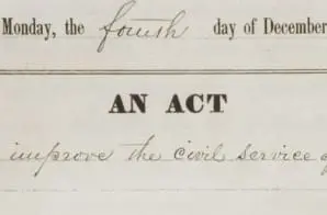 Following the assassination of President James A. Garfield by a disgruntled job seeker, Congress passed the Pendleton Act in January of 1883. The act took its name from long-time reformer Senator George Hunt Pendleton of Ohio and was signed into law by President Chester A. Arthur, who had become an ardent reformer after Garfield’s assassination.