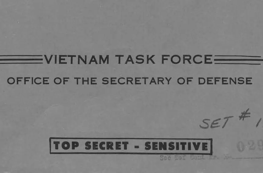 This once-secret report documents U.S. involvement in the war in South Vietnam, Laos, and Cambodia, from the U.S. engagement in Vietnam during World War II and ending with the total commitment of U.S. military forces in 1967. Commissioned by Secretary of Defense Robert McNamara in 1967, the official title is “Report of the Office of the Secretary of Defense Vietnam Task Force.”