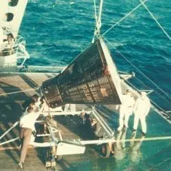 Full Citation: Photograph of Gemini 3 Recovery on the U.S.S. Intrepid; 3/23/1965; Records of the National Aeronautics and Space Administration, Record Group 255. [Online Version, https://docsteach.org/document/photograph-of-gemini-3-recovery-on-the-uss-intrepid/, February 25, 2026]