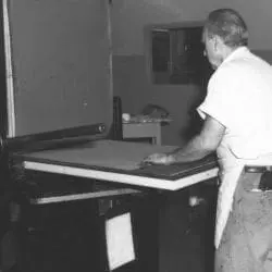 Full Citation: Placing Paper for Printing over the Printing Plate; 4/13/1976; Records of the National Archives and Records Administration, Record Group 64. [Online Version, https://docsteach.org/document/placing-paper-for-printing-over-the-printing-plate/, February 22, 2026]