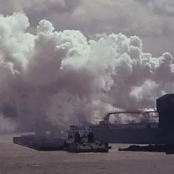 Full Caption: Pollutants Hang in the Air Along The Monongahela River at Clairton, Pennsylvania, 20 Miles South of Pittsburgh. The United States Steel Corporation Coke Plant is Seen at the Right. Previously it Has Been Cited for Violations of the Clean Air Act Which Was Passed by Congress and is Administered by the U.S. Environmental Protection Agency
