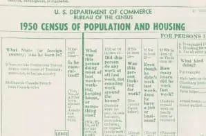 The P1, Population and Housing Schedule, was used throughout most of the United States by enumerators to conduct the 1950 Census. Each page lists up to 30 names with corresponding responses to the census questions collected by census enumerators.
