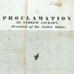 On December 10, 1832, just weeks after South Carolina rejected the tariffs, President Andrew Jackson sent this proclamation to Congress giving his views on the Constitution and the measures adopted by South Carolina’s State Convention.