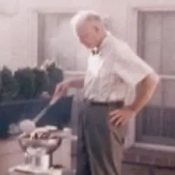 President Eisenhower cooking on the solarium of the White House, ca 1953-61. After seeing this photo in the newspaper, Queen Elizabeth II sent President Eisenhower this note along with this recipe.