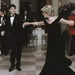 Full Citation: C31900-22; Princess Diana Dancing with John Travolta in Cross Hall at The White House; 11/9/1985; Reagan White House Photographs, January 20, 1981–January 20, 1989; Collection RR-WHPO: White House Photographic Collection,; Ronald Reagan Library, Simi Valley, CA. [Online Version, https://docsteach.org/document/princess-diana-dancing-with-john-travolta-white-house/, March 31, 2026]