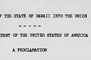 Dwight D. Eisenhower’s Presidential Proclamation 3309 admitted the State of Hawaii into the Union. In the proclamation, Eisenhower declared that the Congressional and other procedural requirements had been met to admit Hawaii.