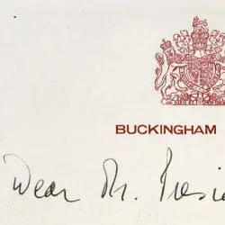 In this handwritten letter from Queen Elizabeth II to President Dwight D. Eisenhower, she explains in more detail her recipe for drop scones that she has sent to the President and recalls his visit to Balmoral. The letter is on Buckingham Palace notepaper and signed “Elizabeth R”.