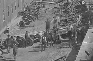 Full Citation: Railroad repair shops; ca. 1860 – 1865; Mathew Brady Photographs of Civil War-Era Personalities and Scenes, 1921 – 1940; Records of the Office of the Chief Signal Officer, Record Group 111. [Online Version, https://docsteach.org/document/railroad-repair-shops/, January 11, 2026]