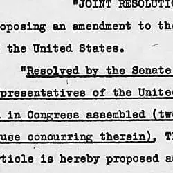 “Resolved by the Senate and House of Representatives of the United States of America in Congress assembled (two-thirds of each House concurring therein), That the following article is hereby proposed as an amendment to the Constitution of the United States, which shall be valid to all intents and purposes as part of the Constitution when ratified by conventions in three-fourths of the several States: