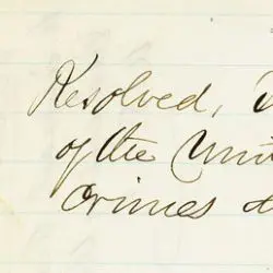 On February 21, 1868, this resolution to impeach President Andrew Johnson was written on a scrap of paper and introduced in the U.S. House of Representatives. Three days later the House voted 128-47 to adopt the resolution.