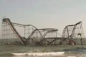 Seaside Heights, N.J., Nov. 12, 2012 — The iconic roller coaster that had been part of the Seaside Heights boardwalk for over 70 years sits in the Atlantic Ocean after Hurricane Sandy swept through the area and pushed the roller coaster into the ocean. Photo by Patsy Lynch/FEMA