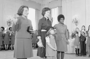 Full Citation: Photograph WHSP-C-00637-26; Rosalynn Carter with Representatives from the Girl Scouts of America; 3/11/1977; 6-20 President Carter with Mr. John Shanklin and Grandson Jason 21-27 RC with Girl Scout Representative 28-35 RC at NIH with Mrs. Callaghan; Jimmy Carter’s Presidential Photographs, 1/20/1977-1/20/1981; Collection JC-WHSP: White House Staff Photographers Collection,; Jimmy Carter Library, Atlanta, GA . [Online Version, https://docsteach.org/document/rosalynn-carter-girl-scouts/, April 4, 2026]