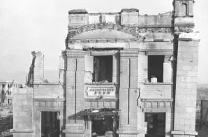 Full Citation: Photograph 243-HP-I-31-2; Photograph of Hiroshima after Atomic Bomb; 1945; Photographs Used In The Report Effects of the Atomic Bomb on Hiroshima, Japan, 1947 – 1947; Records of the U.S. Strategic Bombing Survey, Record Group 243; National Archives at College Park, College Park, MD. [Online Version, https://docsteach.org/document/ruined-building-hiroshima/, April 1, 2026]