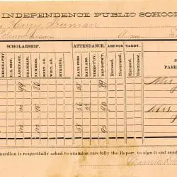 This is the grade card of Harry S. Truman for second grade at the Columbian School, Independence, Missouri. The card is signed for the first and second terms by his mother, Martha Ellen Truman. His teacher, Mamie Dunne, signed the bottom of the grade card.