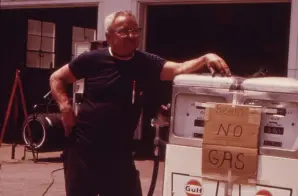 This photograph shows a typical scene of a gas shortage during the energy crisis of the 1970s. It was then that Federal energy policy first became a major political priority. In response to gasoline shortages and a series of petroleum embargos, Presidents Nixon, Ford, and Carter each took steps to readdress America’s energy policy. Through legislative action and an array of executive orders, the Federal Government established the Energy Research and Development Administration, Federal Energy Administration, and Office of Energy Programs.