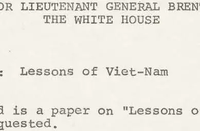 The paper “Lessons of Viet-Nam” is attached to a memo for Lieutenant General Brent Scowcroft, National Security Adviser to President Ford.