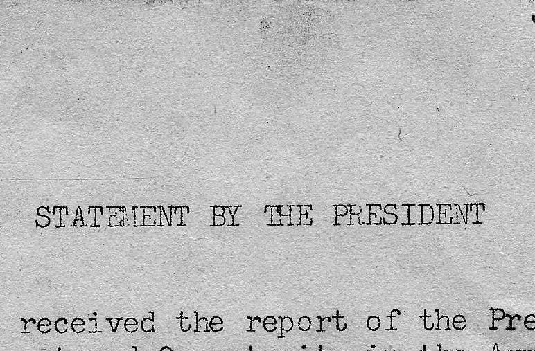 This document comes from the records of the President’s Committee on Equality of Treatment and Opportunity in the Armed Services. The committee was established by Executive Order 9981, on July 26, 1948, to recommend revisions in military regulations in order to implement the Government’s policy of desegregation of the armed services — that there was to be equality of treatment and opportunity for all members of the armed forces, regardless of race, color, religion, or national origin.