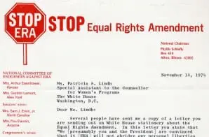 After Congress passed the ERA, lawyer Phyllis Schlafly launched the STOP ERA campaign. Believing the ERA was vague and unnecessary, and that making law gender-neutral was detrimental to families and to the United States, Schlafly fought against the ERA until its final deadline. When the deadline for ratification passed in 1982, the amendment was three states shy of the requisite number of votes.