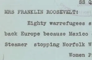 In this telegram to First Lady Eleanor Roosevelt, women passengers aboard the Quanza request to land in the United States.