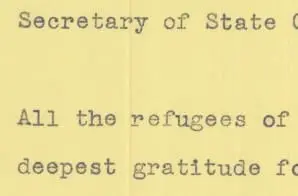 In this telegram to Secretary of State Cordell Hull, passengers of the steamship SS Quanza thank him for permitting them to land in the United States.