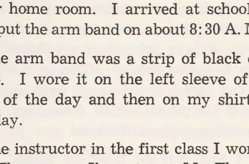 This is a record of John Tinker’s testimony in the appeal of the district court’s decision. Although the appeals court upheld the school’s rule banning the armbands, the Supreme Court ultimately ruled that fear of disruption was not grounds for barring speech.