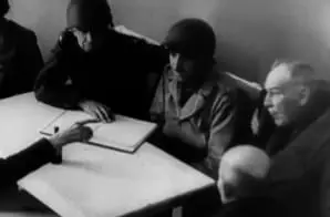 This is a clip from a 10-minute film showing preparations for the International Military Tribunal at Nuremberg. The longer film includes atrocity footage as evidence of Nazi crimes against humanity, and makes the case for seeking justice instead of revenge.