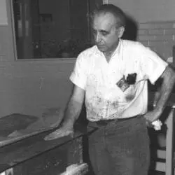Full Citation: The Box on which the Plate was Heated to Soften the Wax and the Printer Mr. Angelo LoVecchio; 4/13/1976; Records of the National Archives and Records Administration, Record Group 64. [Online Version, https://docsteach.org/document/the-box-on-which-the-plate-was-heated-to-soften-the-wax-and-the-printer-mr-angelo-lovecchio/, December 13, 2025]