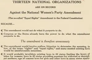 View the full document here: https://docsteach.org/document/thirteen-national-organizations-are-on-record-against-the-national-womens-party-amendment/
