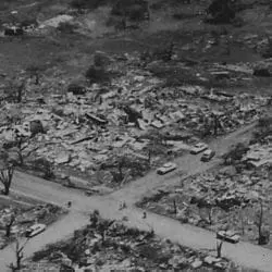 Full Citation: Tornado damage. Blackwell, Oklahoma; 5/25/1955; Records of the Weather Bureau, Record Group 27. [Online Version, https://docsteach.org/document/tornado-damage-blackwell-oklahoma/, April 3, 2026]