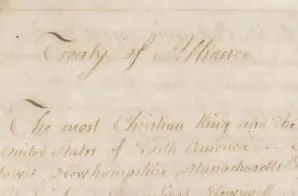The most Christian King and the United States of North America, to wit, New Hampshire, Massachusetts Bay, Rhodes island, Connecticut, New York, New Jersey, Pennsylvania, Delaware, Maryland, Virginia, North Carolina, South Carolina, and Georgia, having this Day concluded a Treaty of amity and Commerce, for the reciprocal advantage of their Subjects and Citizens have thought it necessary to take into consideration the means of strengthening those engagements and of rondring them useful to the safety and tranquility of the two parties, particularly in case Great Britain in Resentment of that connection and of the good correspondence which is the object of the said Treaty, should break the Peace with france, either by direct hostilities, or by hindring her commerce and navigation, in a manner contrary to the Rights of Nations, and the Peace subsisting between the two Crowns; and his Majesty and the said united States having resolved in that Case to join their Councils and efforts against the Enterprises of their common Enemy, the respective Plenipotentiaries, impower’d to concert the Clauses & conditions proper to fulfil the said