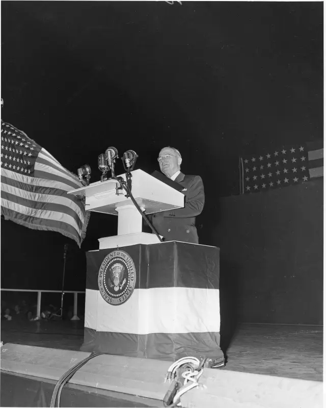 Full Citation: 73-3730; Truman Speaks at Independence Day Ceremonies; 7/4/1951; Photographs Relating to the Administration, Family, and Personal Life of Harry S. Truman, 1957–2023; Collection HST-PHC: Photograph Collection,; Harry S. Truman Library, Independence, MO. [Online Version, https://docsteach.org/document/truman-speaks-independence-day-ceremonies/, April 8, 2026]