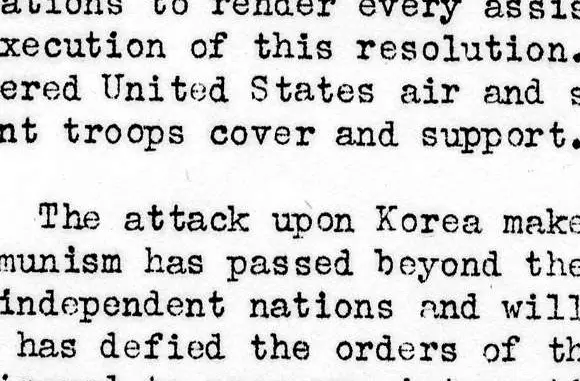 In this press release, President Truman announced that he was committing American forces to a combined United Nations military effort in Korea. The decision was made after war broke out along the 38th parallel on June 25, 1950. On that day, North Korean troops coordinated an attack at several strategic points along the parallel and headed south toward Seoul.