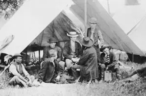 Full Citation: US Military Telegraph Operators, Headquarters, Army of the Potomac. July 1863.; 7/1863; Mathew Brady Photographs of Civil War-Era Personalities and Scenes, 1921 – 1940; Records of the Office of the Chief Signal Officer, Record Group 111. [Online Version, https://docsteach.org/document/us-military-telegraph-operators-headquarters-army-of-the-potomac-july-1863/, December 17, 2025]