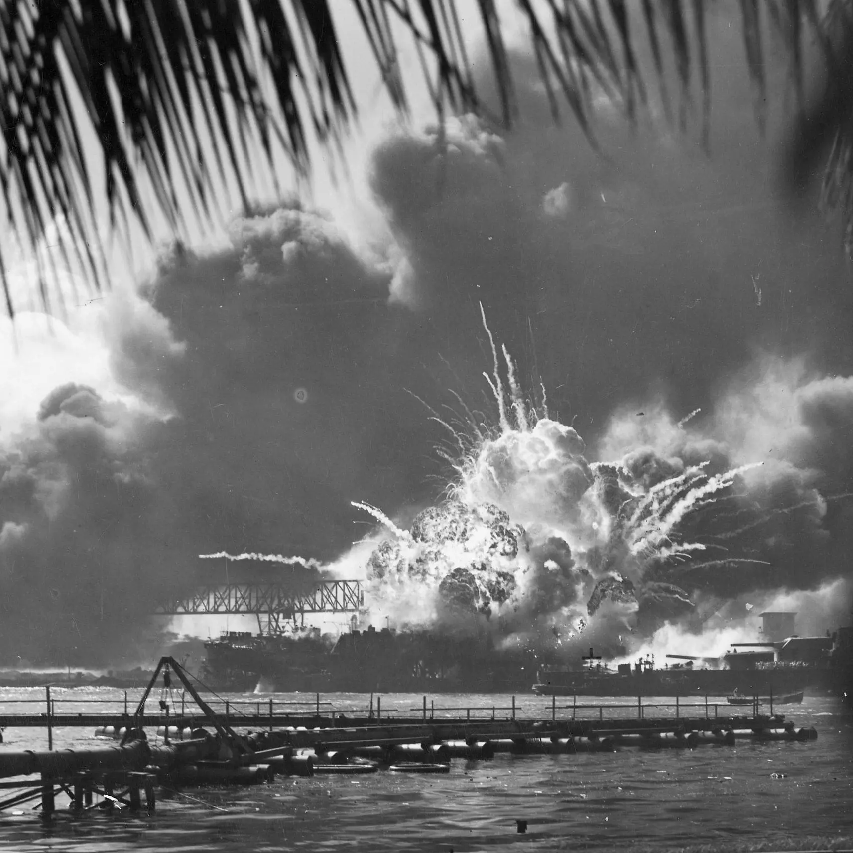 Full Citation: 80-G-16871; USS SHAW exploding during the Japanese raid on Pearl Harbor, T.H.; 12/7/1941; General Photographic Files, 1943–1968; General Records of the Department of the Navy, Record Group 80; National Archives at College Park, College Park, MD. [Online Version, https://docsteach.org/document/uss-shaw-exploding-pearl-harbor/, April 27, 2026]