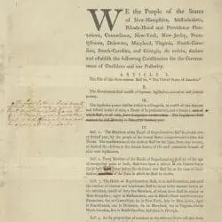 Full Citation: George Washington’s Annotated Copy of a Draft of the U.S. Constitution; 8/6/1787; Official Records of the Constitutional Convention of 1787; Records of the Continental and Confederation Congresses and the Constitutional Convention, Record Group 360; National Archives Building, Washington, DC. [Online Version, https://docsteach.org/document/washington-annotated-draft-constitution/, December 23, 2025]