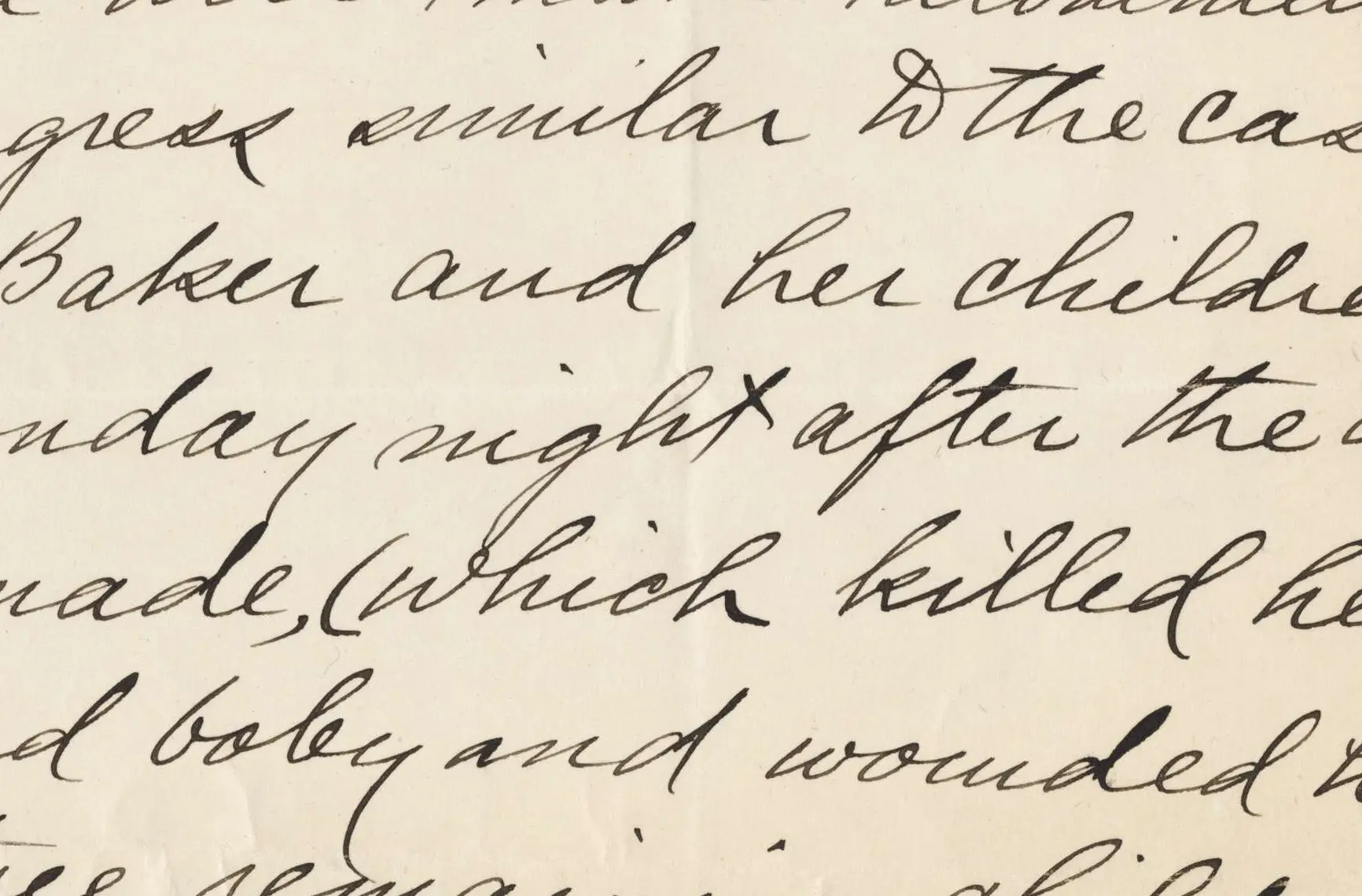 In this letter to Senator Henry Dawes of Massachusetts, Wells appealed for justice in the lynching of Postmaster Frazier B. Baker and his two-year-old daughter, Julia, in South Carolina, in 1898. She urged Congress to act on behalf of the remaining members of the Baker family. The Department of Justice did not prosecute anyone after an all-white jury produced a mistrial.