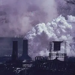 Full Caption: White plume containing many pollutants is emitted from a quenching tower at a Coke plant owned by the United States Steel Corporation. It as located at Clairton, Pennsylvania, 20 miles south of Pittsburgh, the plant previously has been cited for violations of the Clean Air Act which was passed by Congress and is administered by the U.S. Environmental Protection Agency.