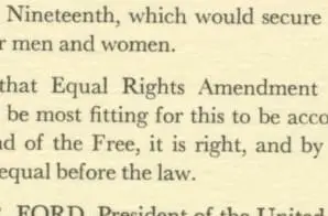 In this Women’s Equality Day proclamation from 1976, President Gerald Ford states it would be most fitting for ratification of the Equal Rights Amendment to occur during the Bicentennial Year.