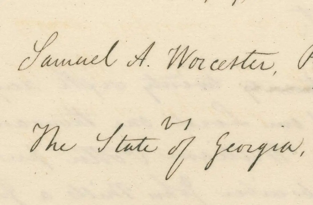 The men appealed. After they were unsuccessful in the highest state court, they appealed to the U.S. Supreme Court on a writ of error (which demands the lower court provide the full record to a higher court for review of errors) in Worcester v. Georgia. The letter shown here notified the Attorney General of Georgia that Butler and Worcester’s lawyers were filing a writ of error with the U.S. Supreme Court on their clients’ behalf. It comes from the case file for Worcester v. Georgia.
